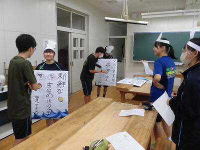 9/3(水)14:00~東光ストア大谷地店での販売実習に向けて「ホタテの殻むき実習」を行いました。