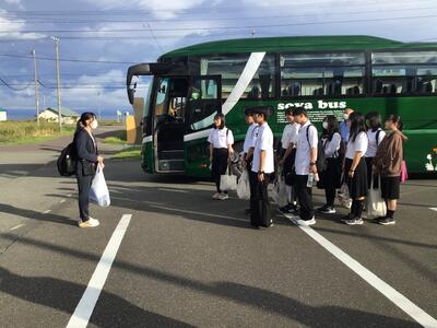おはようございます。3年生9名、全員元気です。これより札幌方面に向けて学校を出発します。