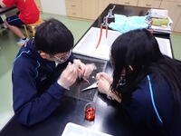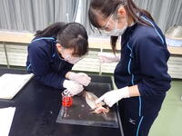 10月1日に2年生の理科の授業で、イカの解剖を行いました。イカの臓器を傷つけないように、慎重に作業を行い、どの班も食道や心臓の位置を確認することができました。