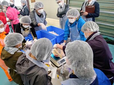 同じく8月23日(火)今年度も地域の漁師さんを講師にホタテの殻むき実習を行いました。今年度は、修学旅行での販売実習を実施する予定です。お客さんへ要望があれば殻から身をむいて販売するための練習です。生徒全員が、とても手際よく上手に剥いていました。是非、宗谷のホタテをアピールしてきてください。