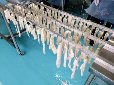 今日のタコの燻製実習は、昨日味付けしたタコを「てんだがけ」する工程です。