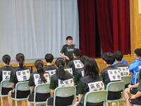 生徒会長の堂々とした挨拶の後、各部ごとに一人ずつ決意の言葉を発表しました。緊張しながらも力強く発表する姿に、大会にかける意気込みを感じました。