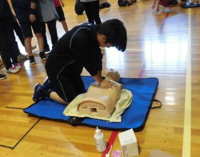 本校は、救急車到着までに少し時間がかかってしまいます。その間にも、心臓マッサージを施すことで救うことができる命もあることを教えていただきました。